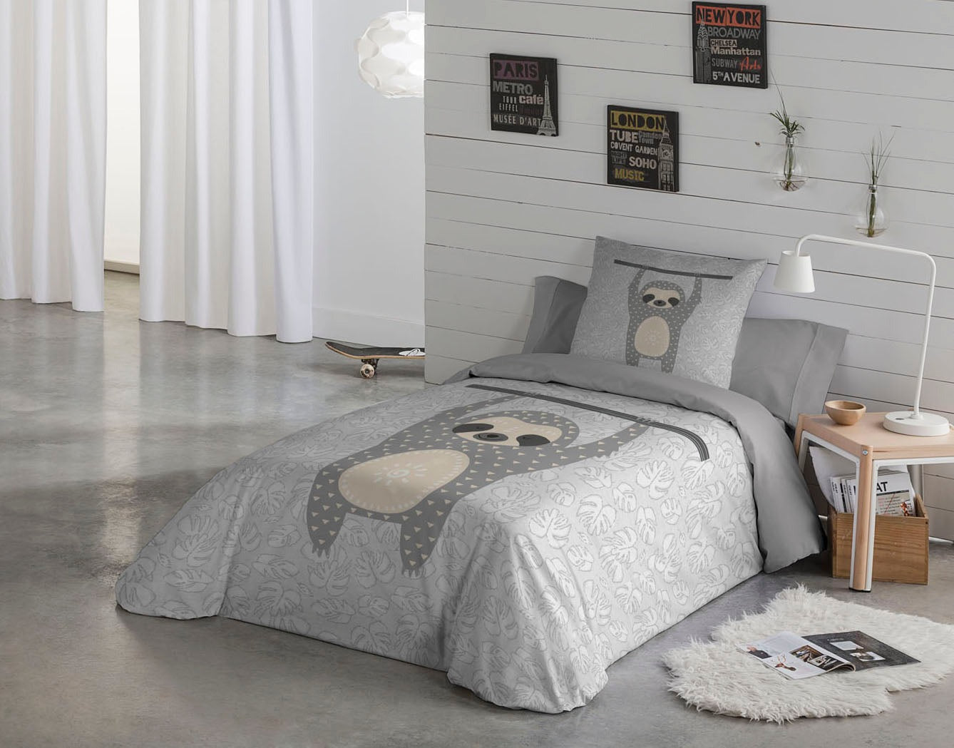 Juego de funda nórdica de 2 piezas con diseño de perezoso (66" de ancho x 86" de largo)